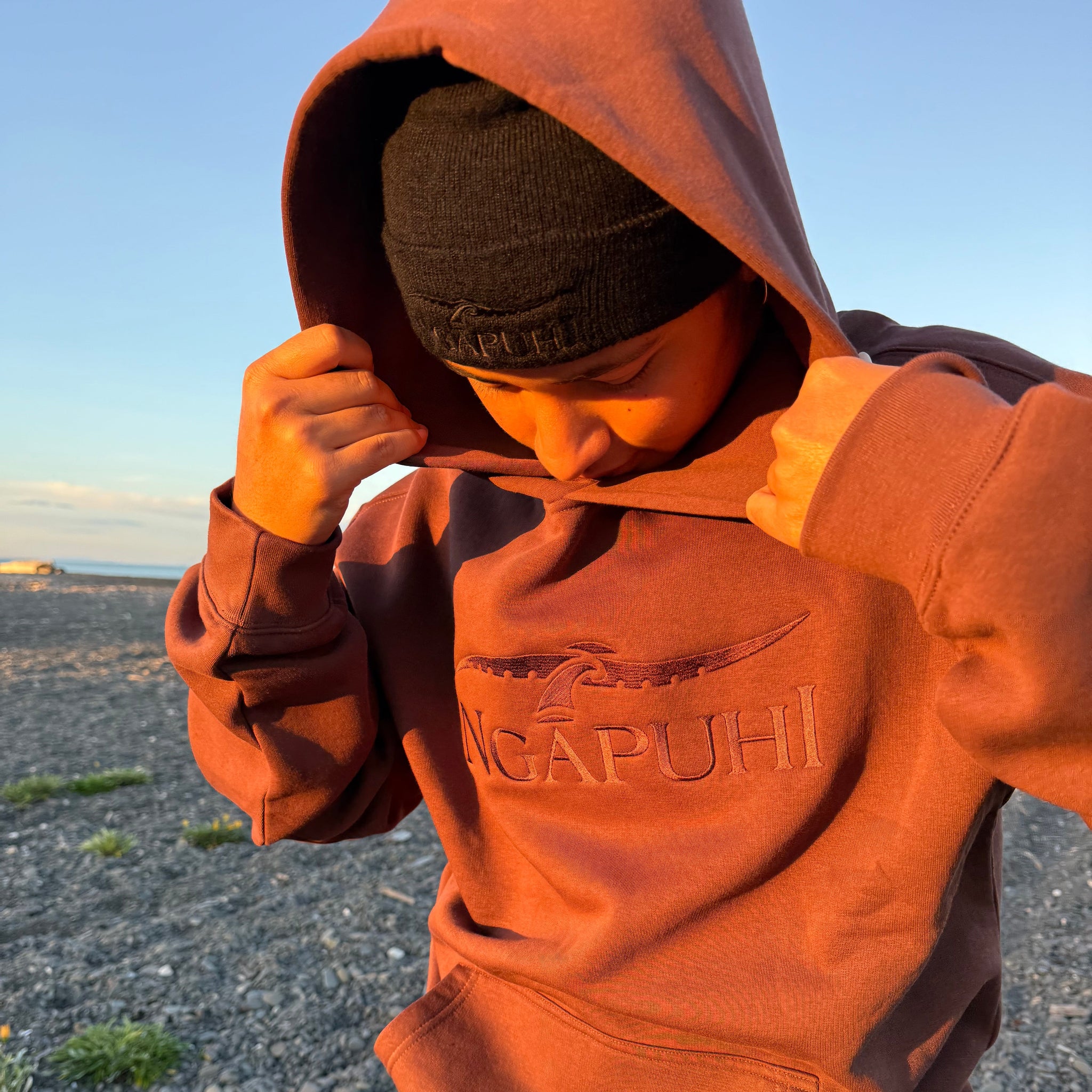 Stand out from the crowd in one of these Northland classics! Quality Embroidery stitching Ngāpuhi hoods are for all seasons and all occasions from the shed to the shop to cuzzins wedding you are sure to get an eyebrow raise in your Ngāpuhi Hood.